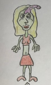 Dis mah Taunt Geraldine. She lives n da ditch, an fuks turtles among udda animals . She gotta crush on Mr. Gerard. Da tootie on her forehead is 4 deep sea fishing. She gives me gud advice weneva I’m arond a ditch.